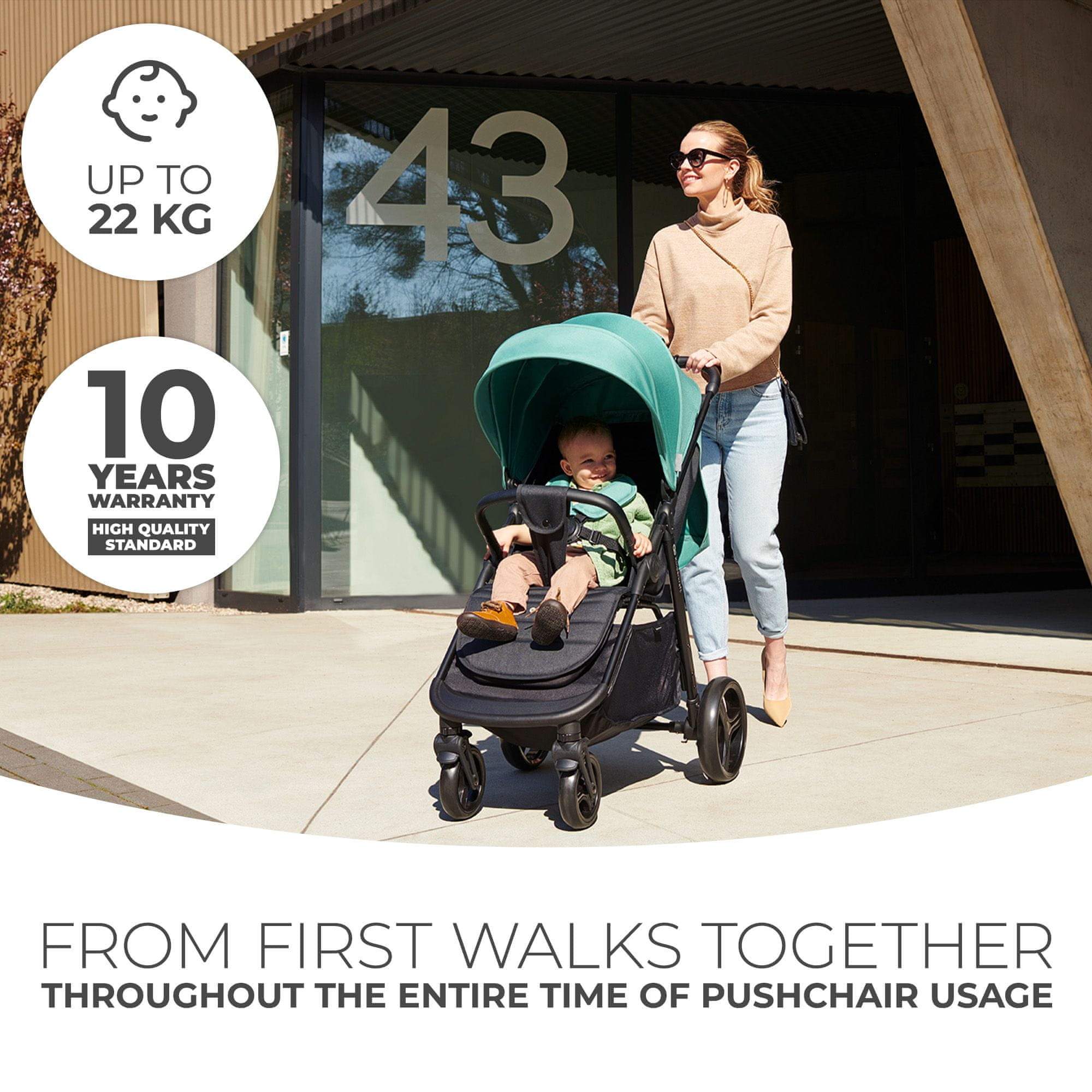 Zunaj sije sonce, pojdimo na sprehod! S športnim vozičkom RINE bo vsak čas na prostem prijeten. Voziček je primeren za otroke od rojstva do 22 kg. Vzmetenje in material, iz katerega so izdelana kolesa, zagotavljata, da se otrok ne bo preveč tresel in bo lahko k mirno opazoval okolico ali spal. Starši bodo nad vozičkom Kinderkraft navdušeni tudi zaradi roko.