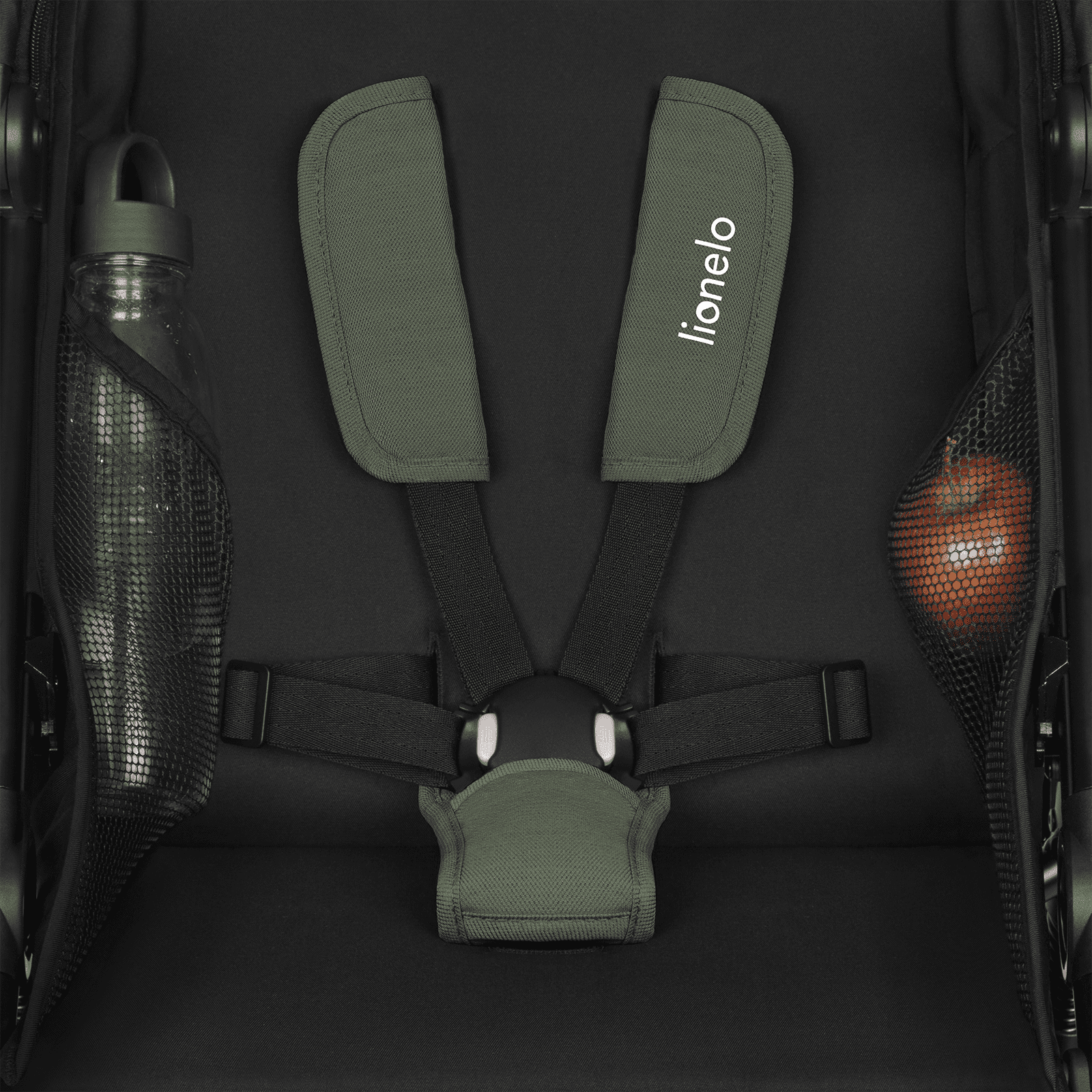 • Varnost zagotavljajo 5-točkovni varnostni pasovi z magnetno zaponko in prevleko za trak, ki preprečuje poškodbe otroške kože