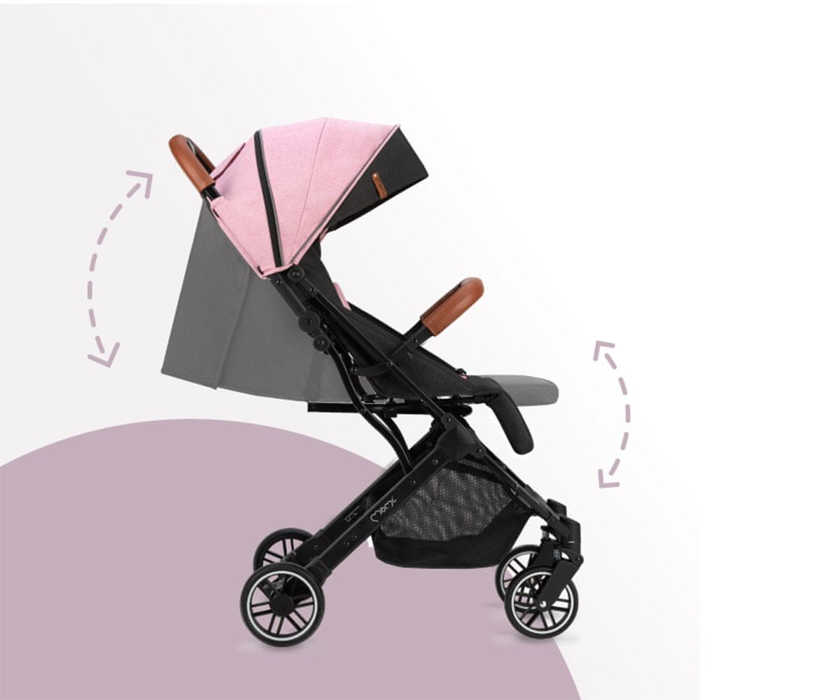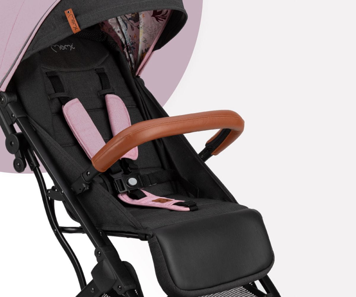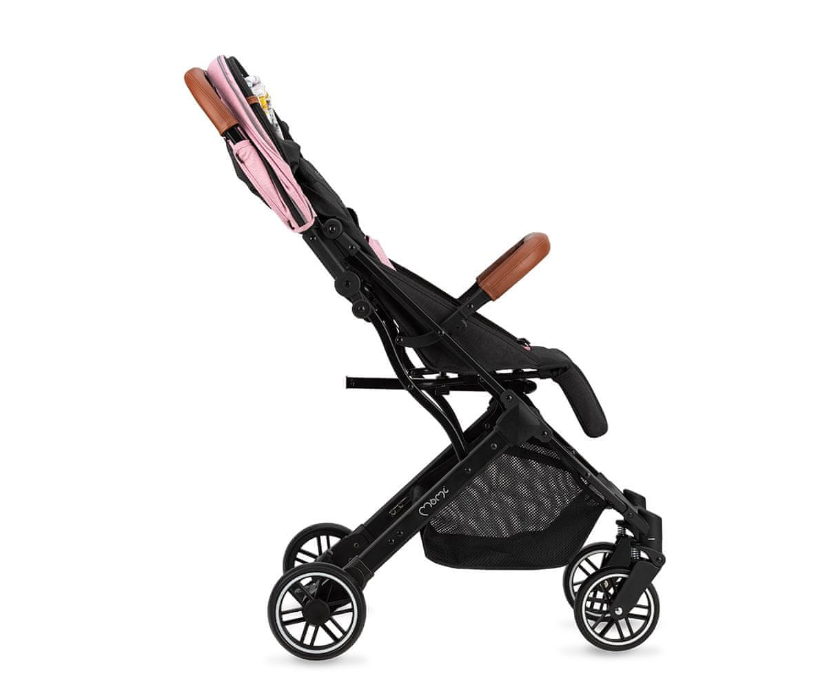 MoMi ESTELLE 2v1 otroški voziček, zložljiv, streha, naslonjalo, pasovi, črno-roza