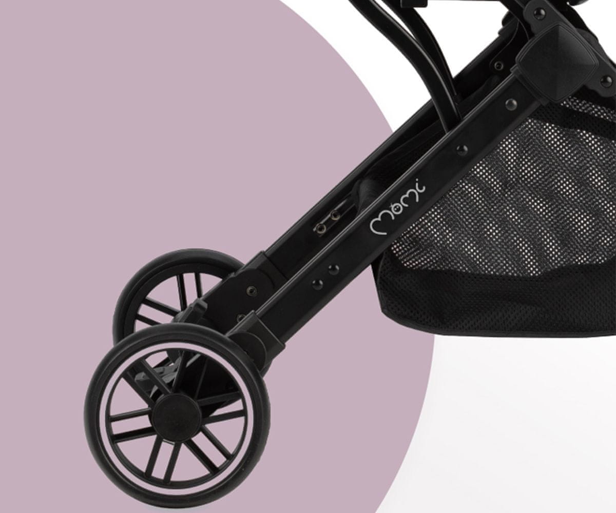Voziček je okreten, kolesa pa so odporna na predrtje, kar zagotavlja udobje med potiskanjem vozička. Centralna zavora je enostavna za uporabo, saj jo lahko zataknete kar z nogo. Pod vozičkom je velika praktična košara, kamor lahko pospravite živila, igrače in podobno.