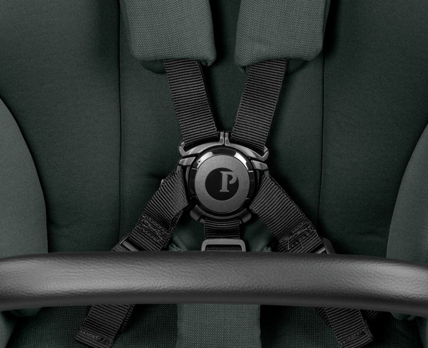 Sedež je opremljen z dvojno prevleko, varnostnim pasom z magnetnim zapenjanjem ter s prednjim varovalom iz eko usnja, ki se enostavno odpira in zapira.