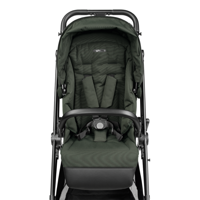 Sedež in strešica: Obrnljiv športni sedež, ki je primeren za novorojenčka in otroka do 22 kg telesne teže, se na podvozje pritrdi z enim klikom. Naslonjalo se spusti v ležeč naklon. Raztegljiva strehica z UV zaščito UPF 50+ ščiti pred nevarnimi sončnimi žarki. 5-točkovni varnostni pas je nastavljiv po višini ter mehko oblazinjen.