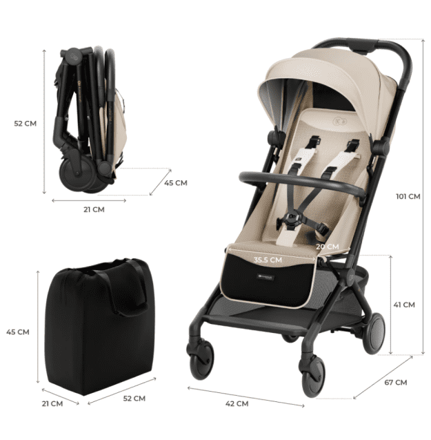 Kinderkraft PILOT 2 ultralahki letalski voziček bež barve Celoten opis