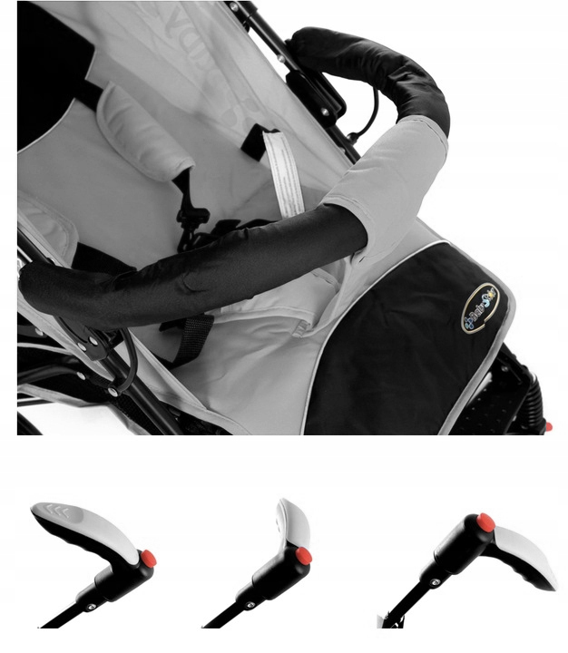 Ergonomsko profiliran, izdelan iz prijetnega materiala na dotik, povečuje udobje in udobje vožnje vozička.