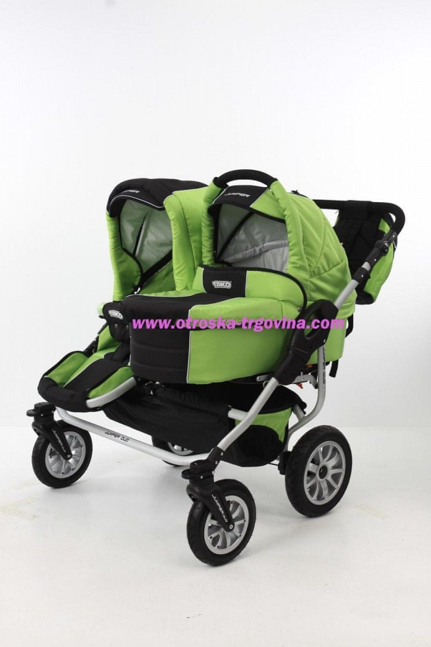 Otroški voziček za dvojčke TAKO JUMPER DUO je lahek in okreten štirikolesnik poljskega proizvajalca otroških vozičkov TAKO. Lep dizajn in kakovostni materiali bodo gotovo navdušili še tako zahtevni starše. Voziček odlikuje izjemna kompaktnost, čvrsto aluminijasto ogrodje, velika vrtljiva in napihljiva kolesa, enostavna uporaba ter popolna oprema – odlična izbira za vse, ki cenijo varnost, udobje in kakovost. Jumper DUO vam bo služl vrsto let!
