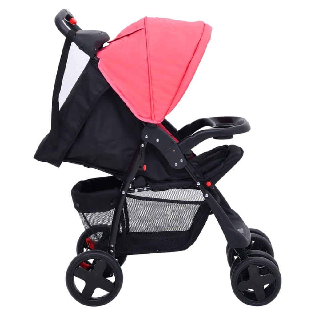 Vidaxl Otroški voziček 2 v 1 rdeč in črn jeklen