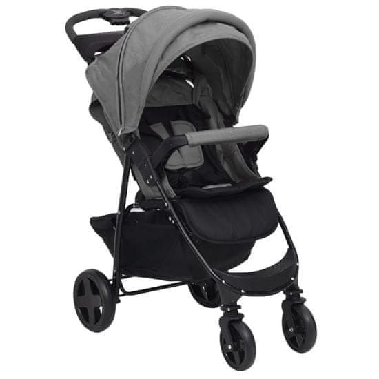Vidaxl Otroški voziček 2 v 1 svetlo siv jeklen