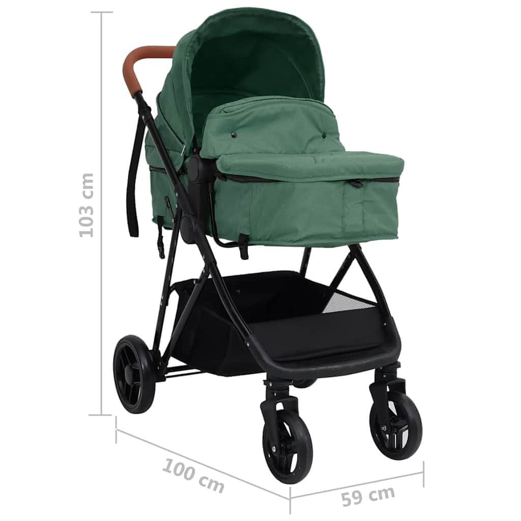 Vidaxl Otroški voziček 2 v 1 zelen in črn jeklen