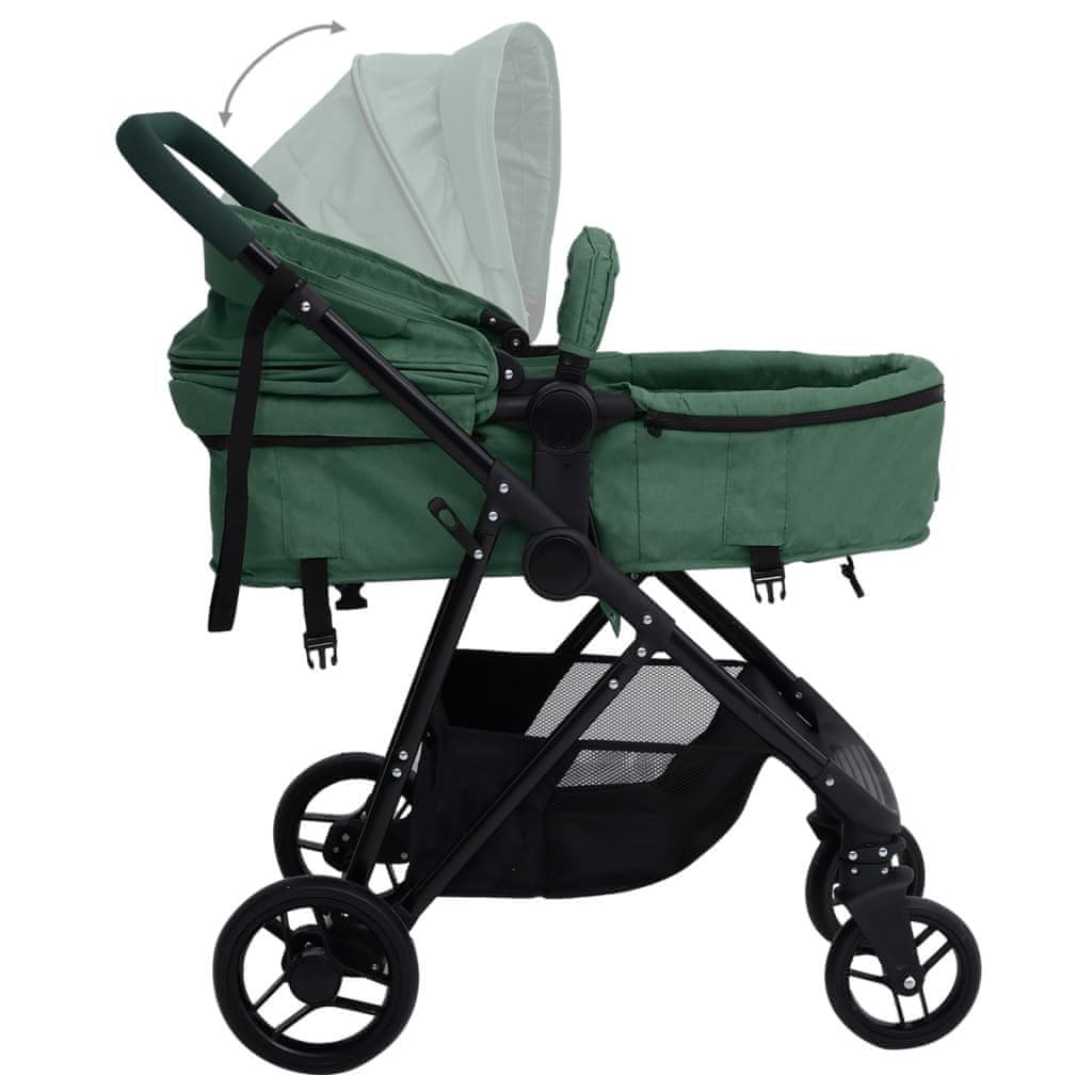 Vidaxl Otroški voziček 3 v 1 zelen in črn jeklen