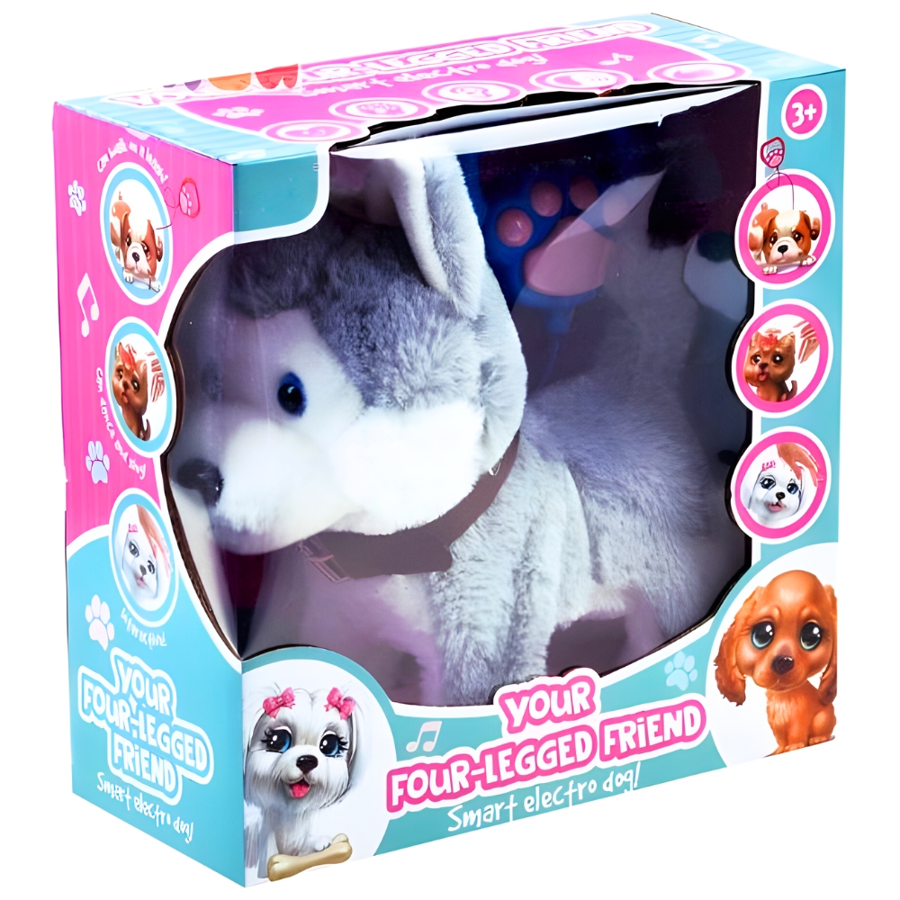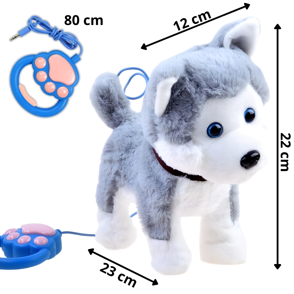 Privoščite svojemu otroku nepozabno zabavo s ljubkim, interaktivnim psom haskijem. Igrača se odziva na dotik , kar vašemu malčku omogoča, da uživa v igri s pravim hišnim ljubljenčkom. Pes laja, cvili, sopiha, maha z repom in hodi naprej sam . Komplet vključuje povodec , s katerim lahko vaš otrok pelje svojega ljubljenčka na virtualni sprehod. ⭐ UČENJE ODGOVORNOSTI