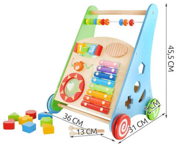 lesena hojica je igrača, ki spremlja vašega otroka pri prvih korakih, odlično pa bo delovala kot pripomoček za razvoj otrokovih motoričnih sposobnosti. ⭕Vsaka od sten potiskalke ima povsem drugačno funkcionalnost in značaj, zaradi česar
