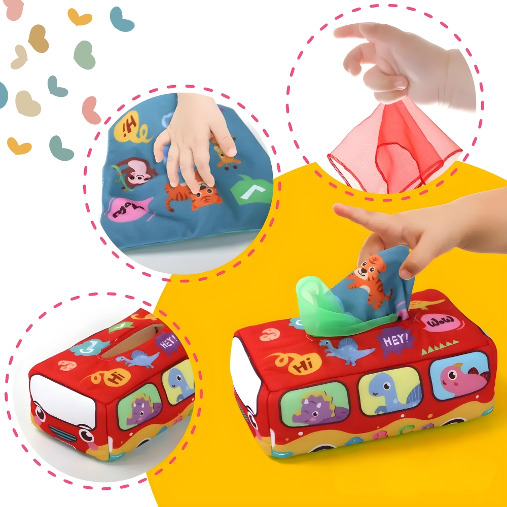 zabava igre ! Naša škatla za robčke je prava poslastica za malčke, ki radi dajejo in jemljejo šumeče robčke – nemogoče se je dolgočasiti ! ❤️ Pa to še ni vse! Vsak robček je