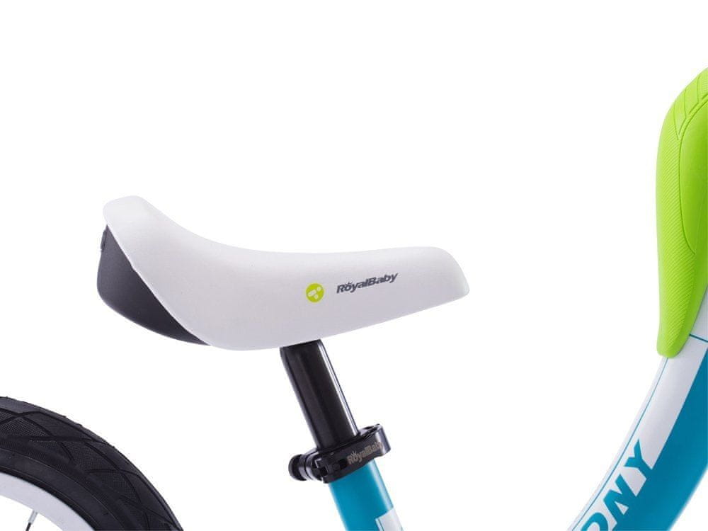 Poganjalec PONY SPRINT z 12-palčnimi napihljivimi kolesi znamke RoyalBaby je lahko in udobno kolo v modri barvi. Idealno je za otroke, stare 3 leta in več. Poganjalec poganja z otroškimi nogami. Med igro bo vaš otrok razvijal ravnotežje in splošno motorično koordinacijo, veščine, ki so bistvene za kasnejše pedaliranje. Zahvaljujoč nastavljivemu sedežu bo kolo raslo z vašim malim kolesarjem. Okvir je izdelan iz aluminija, razen sprednjih vilic. Okvir ima gumijasto prevleko za zaščito pred morebitnimi udarci. Njegova lahka ALUMINIJASTA konstrukcija zagotavlja, da se lahko vaš malček med vožnjo varno premika. RoyalBaby je blagovna znamka koles, zasnovanih za otroke. Njihove izdelke odlikujejo visokokakovostna izdelava, privlačen dizajn in inovativnost. RoyalBaby zagotavlja varno in prijetno vožnjo za vsakega otroka. RoyalBaby misli tudi na starše; sedež ima predal za shranjevanje s trakom, tako da lahko starši po vožnji kolo enostavno premaknejo na katero koli lokacijo.
