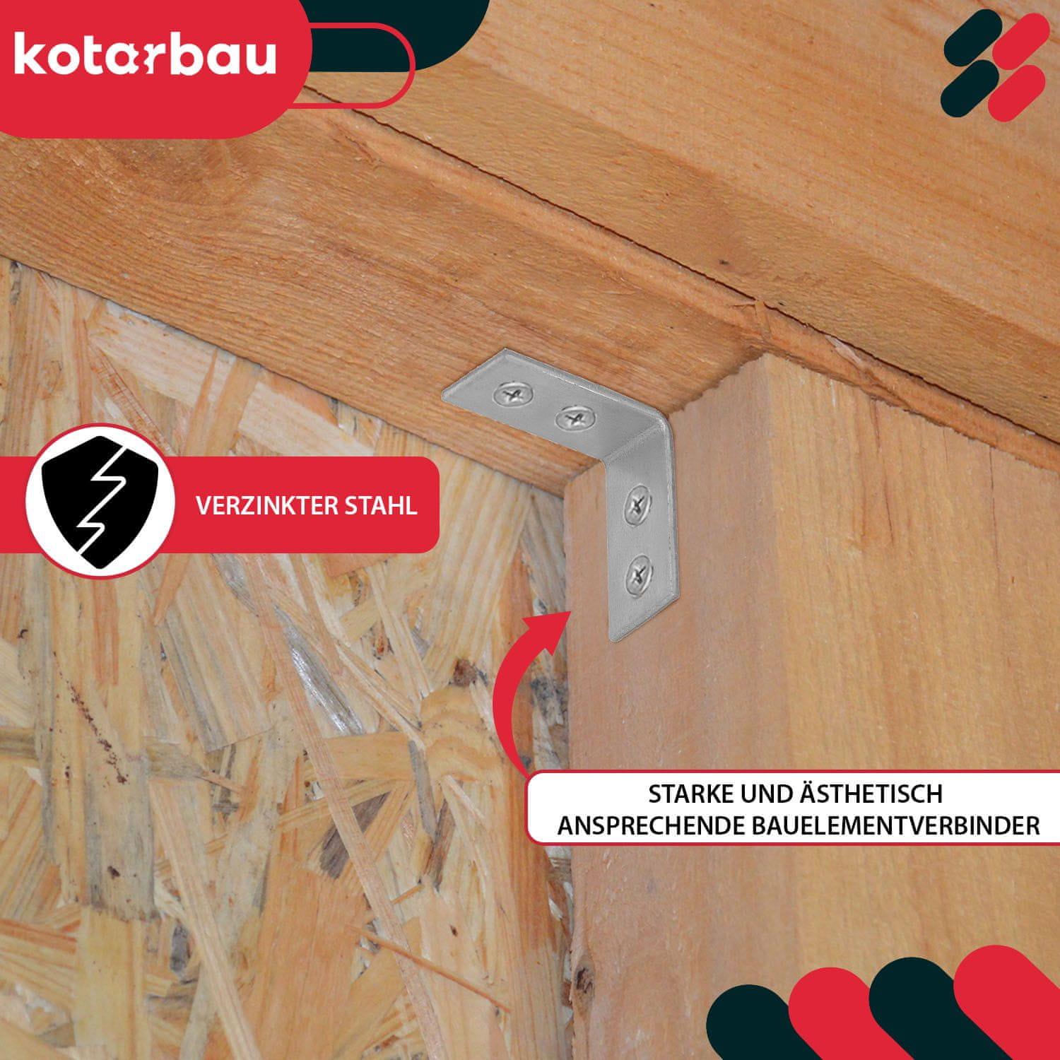 že pripravljenih pritrdilnih lukenj, , ki omogoča učinkovito in nemoteno povezovanje elementov brez predhodnega vrtanja. To znatno skrajša čas dela, hkrati pa poveča natančnost. Kotni nosilec se lahko enostavno uporablja za povezovanje lesa z betonom, jeklom ali drugimi gradbenimi materiali. ESTETIKA: Poleg vzdržljivosti kotni nosilec ponuja tudi estetiko in natančnost.