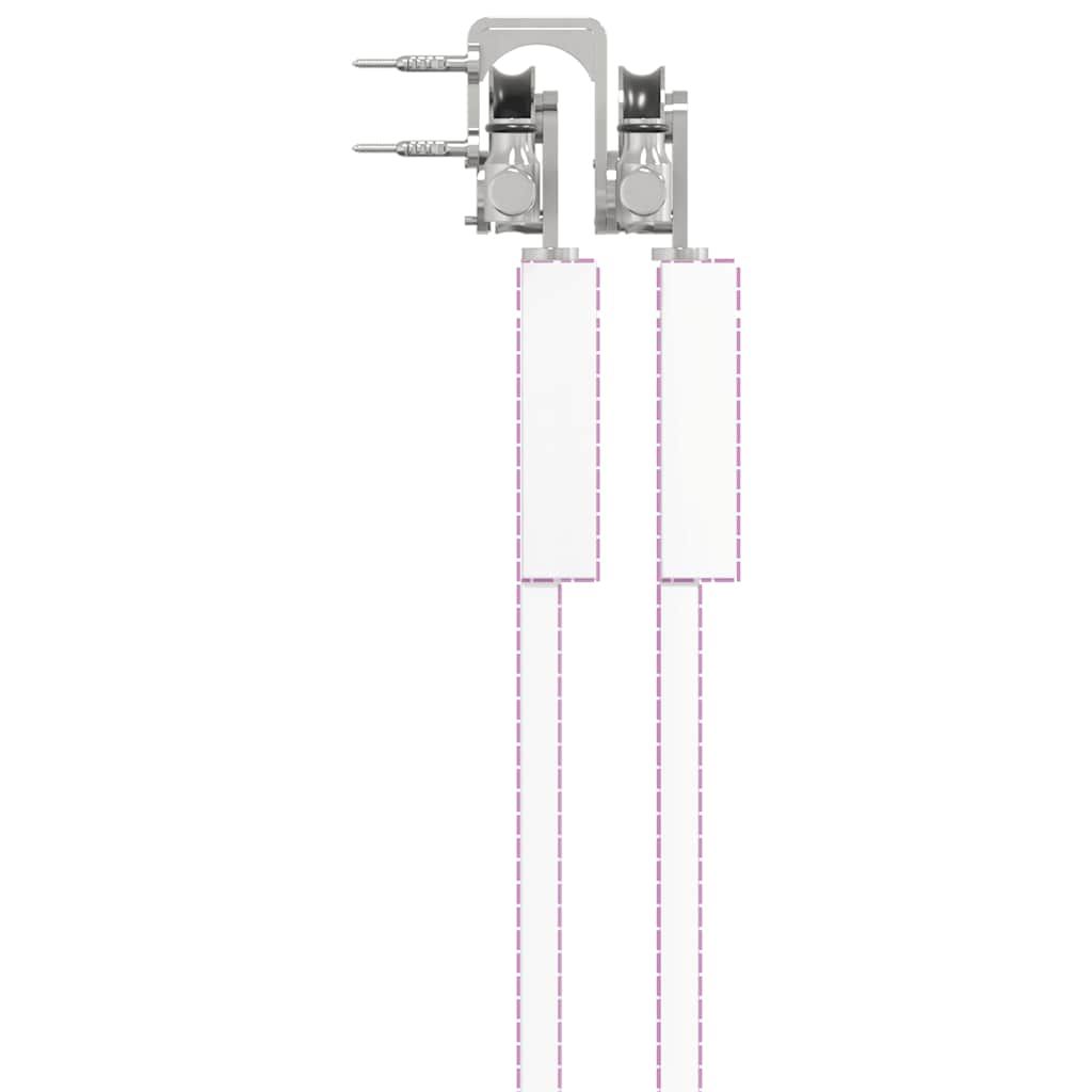 • Idealno za dvojna skednjasta vrata: Kadar je prostor na steni omejen, lahko s kompletom obvoznega nosilca za skedenjska vrata dve skedenjski vrati neodvisno drsita po dveh vodilih, ne da bi potrebovali dodatno razdaljo.