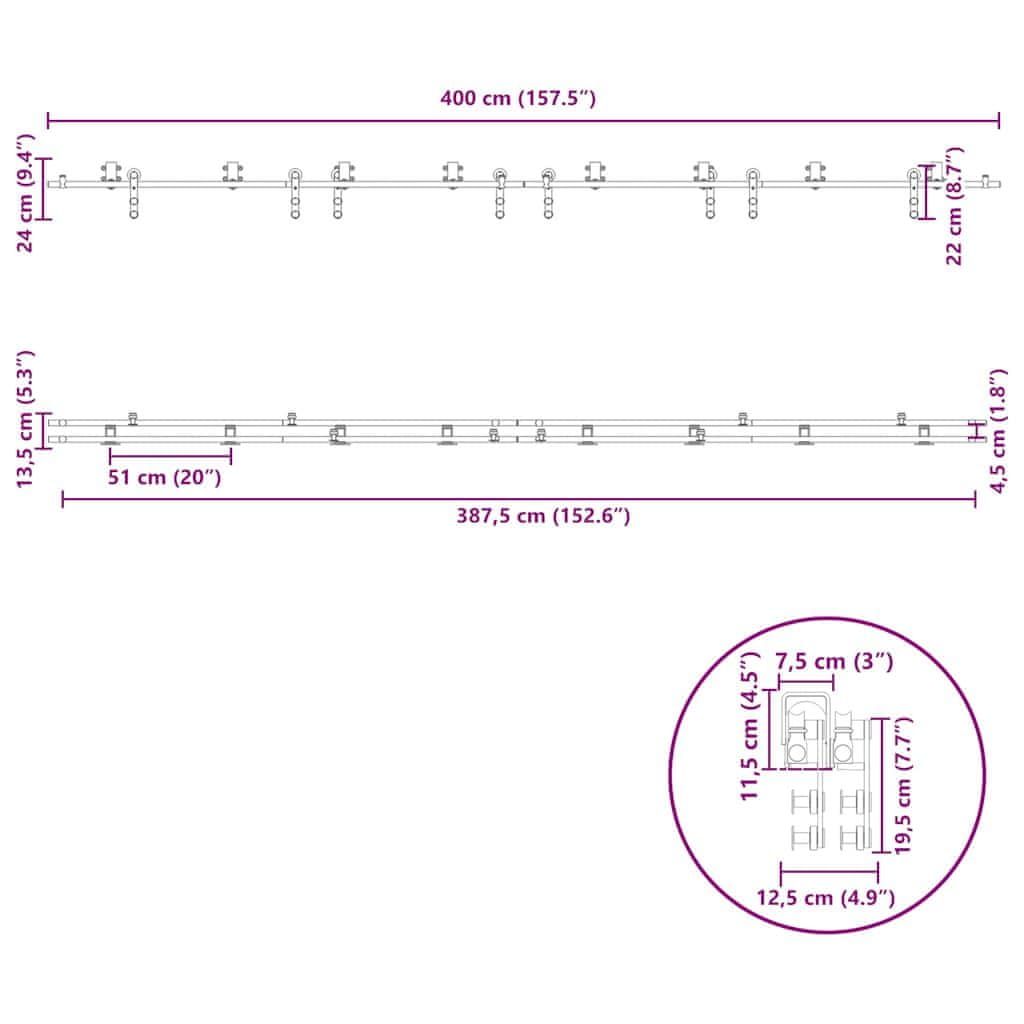 Vidaxl Oprema za drsna vrata 400 cm nerjaveče jeklo srebrne barve