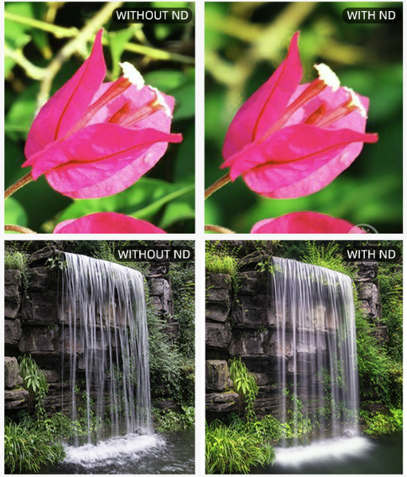 ND filter zagotavlja učinkovito zmanjšanje bleščanja, tako da lahko preprosto posnamete posnetke z realističnimi barvami in odličnim kontrastom. Pomaga vam tudi pri nadzoru nastavitev osvetlitve fotoaparata pri fotografiranju ali snemanju na prostem, saj ponuja 3, 4, 5 ali 6 stopenj kompenzacije za zmanjšanje količine svetlobe, ki vstopa skozi objektiv.