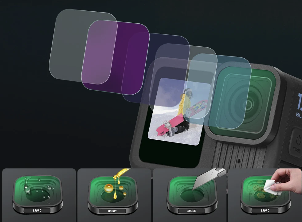Zasnovan posebej za GOPRO 9 10 11 12 filter BDRRC do odlična kakovost slike in izdelave. Da bi zadostili potrebam tistih, ki cenijo optimalne rešitve, so izdelani iz visokokakovostnega optičnega stekla, kot je SCHOTT . Njihova nizka teža ne vpliva na udobje uporabe, zahvaljujoč lahki zlitini. Dvostranski, večplastni postopek premaza zagotavlja odpornost na vodo, maščobo, prah in praske.