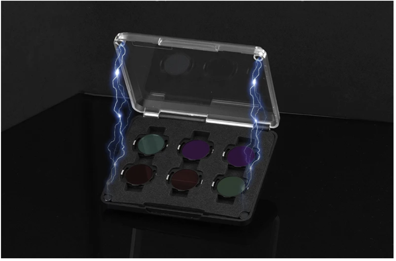 vaš dron varen. Vsak filter ima ultra lahek okvir, ki ne obtežuje naprave ali vpliva na njeno ravnotežje. Zaščitni premaz Za doseganje najboljših rezultatov pri fotografiranju na prostem ima filter poseben premaz, zaradi katerega je odporen proti prahu in praskam.