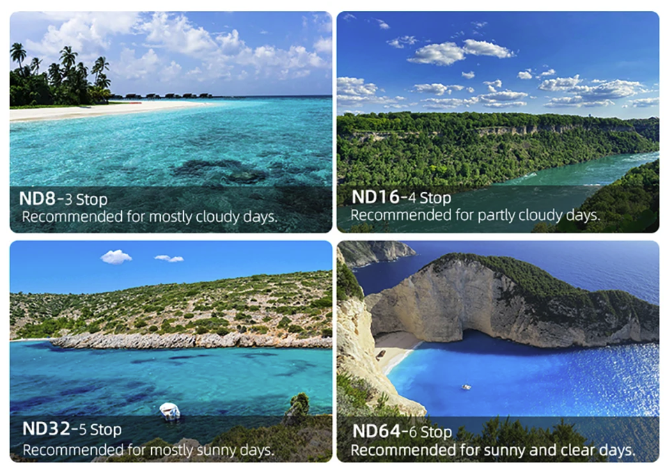 . To je visokokakovostno optično steklo s posebnimi premazi, ki ščitijo lečo pred praskami, prahom in umazanijo. UV filter blokira ultravijolično svetlobo, preprečuje zamegljenost fotografij in zagotavlja ostre ter jasne slike. Komplet vključuje tudi etui za enostavno shranjevanje filtra. BRDRC ND16 filter za DJI Mini 4 Pro Zaščitite objektiv svojega fotoaparata in izboljšajte kakovost posnetkov s ponudbo BRDRC