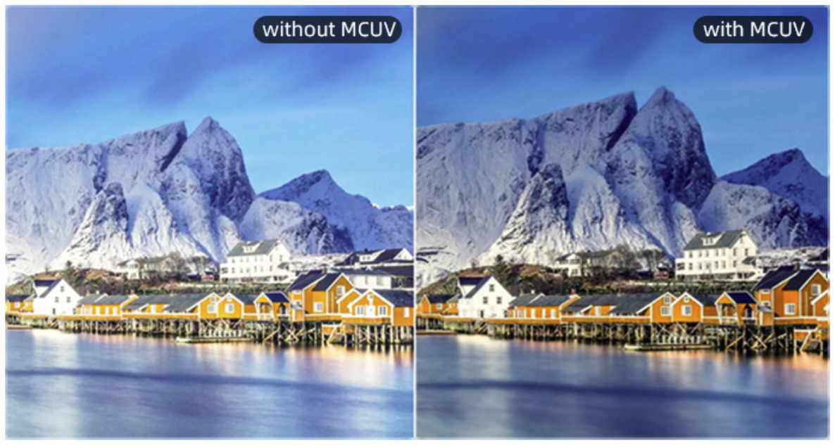 Zmanjša podvajanje in poveča kontrast z zmanjšanjem UV-žarkov, ki vstopajo v objektiv.