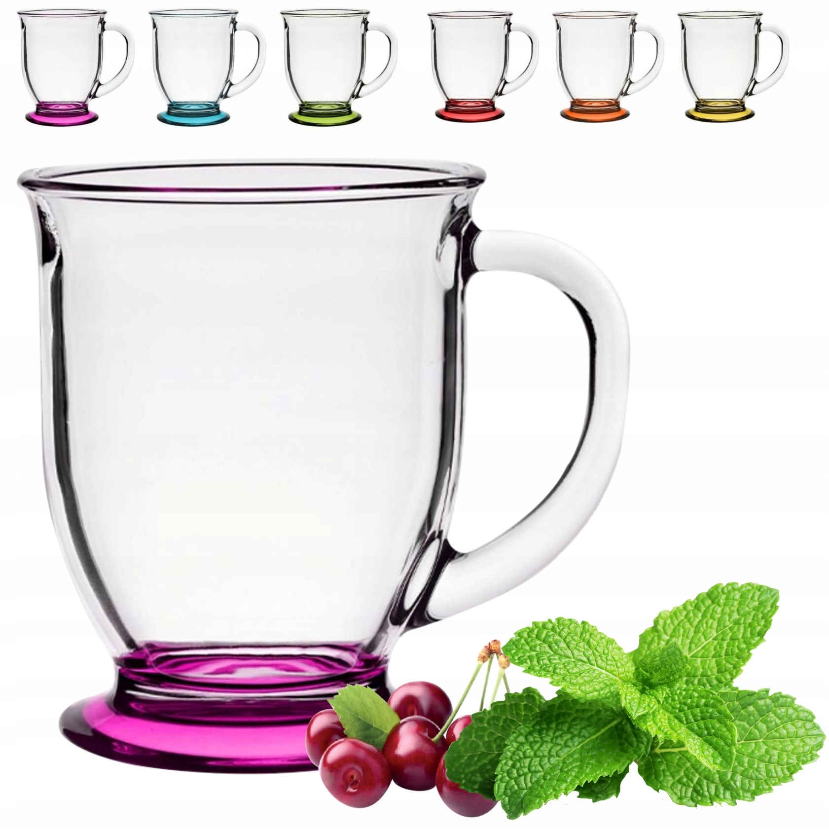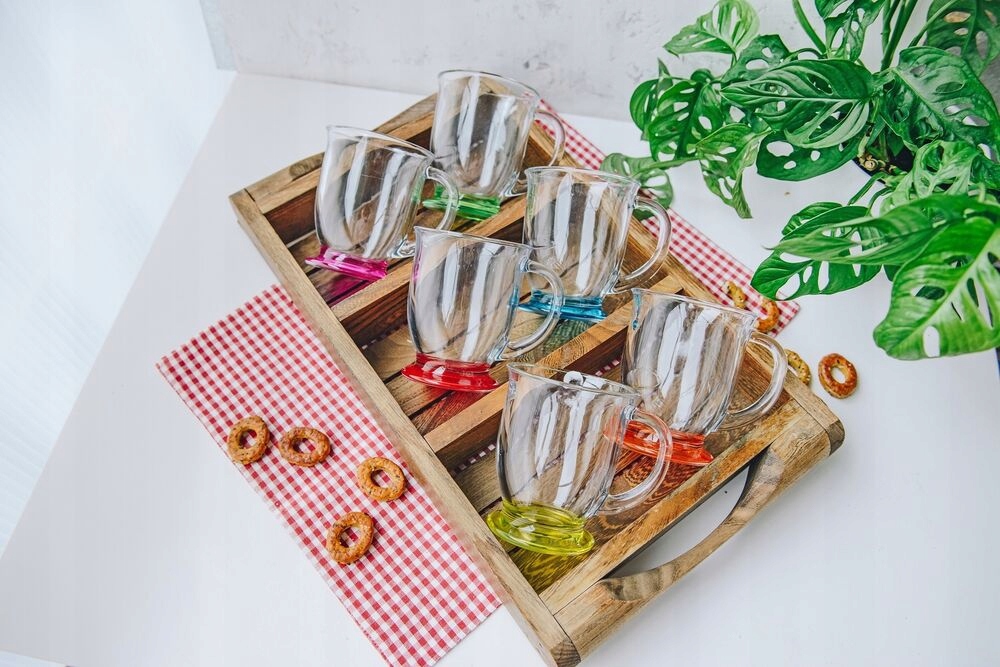 STEKLEN VRČEK 400 ML KUBAS Z ROČAJEM ZA KAVO ČAJ ZELIŠČA PROZOREN SPODNJI BARVA Celoten opis