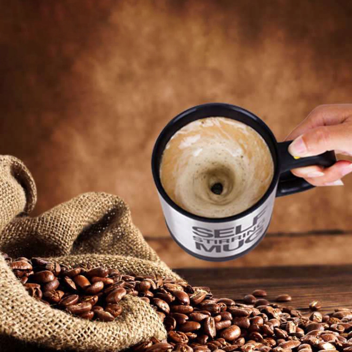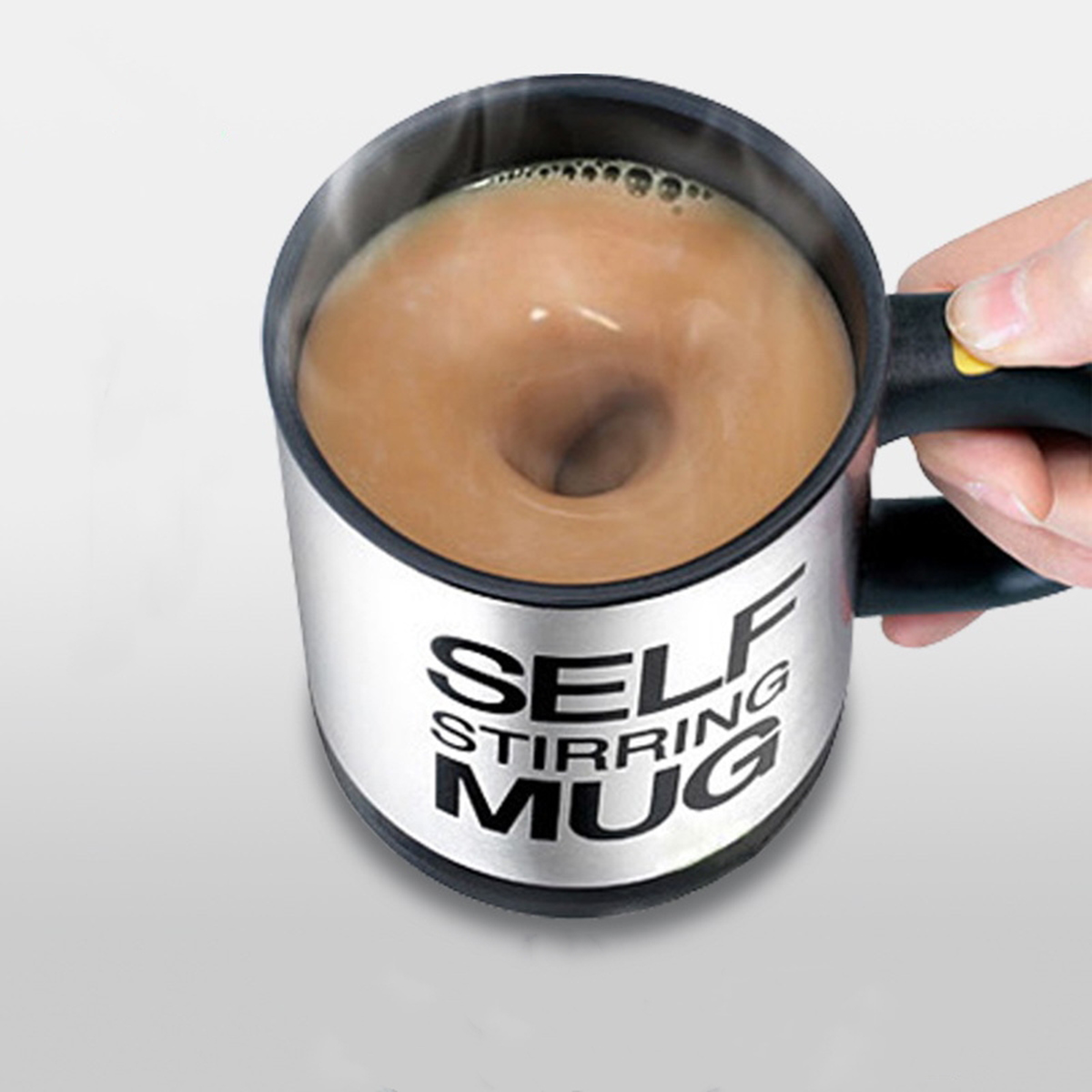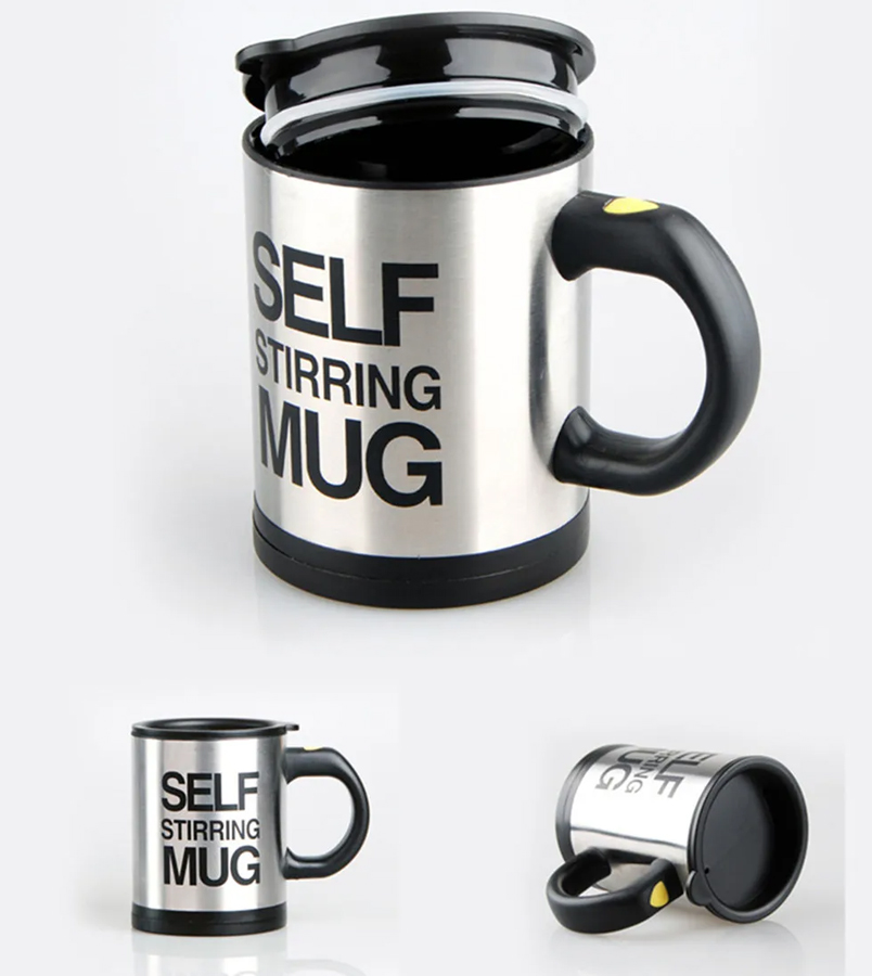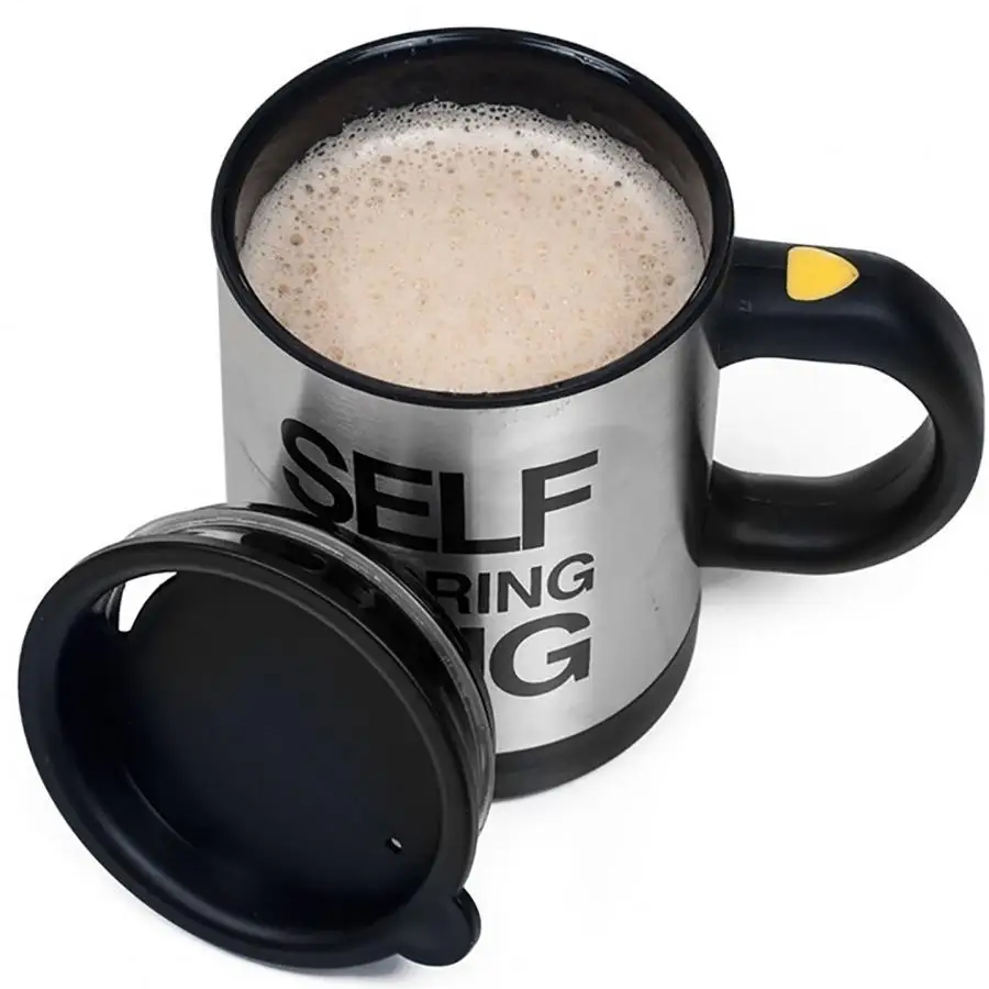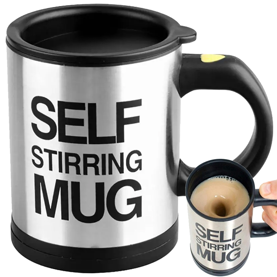 Ta skodelica s samomešalnim VODOM ima prostornino do 350 ml in ima tesen, zaklepljiv pokrov. Pokažite to edinstveno napravo svojim prijateljem! Odličen izdelek za vse lene ljudi. Zahvaljujoč posebni odprtini vam omogoča, da pijete neposredno iz skodelice, ne da bi morali odstraniti pokrov. Aktiviranje mešala je zelo preprosto – preprosto pritisnite gumb na ročaju. Samomešalna skodelica ima poseben tesno prilegajoč se pokrov, ki preprečuje nenamerno razlitje vročih tekočin. Termo skodelica lahko ohranja temperaturo tekočin do 3 ure! Je odličen in zelo praktičen pripomoček!