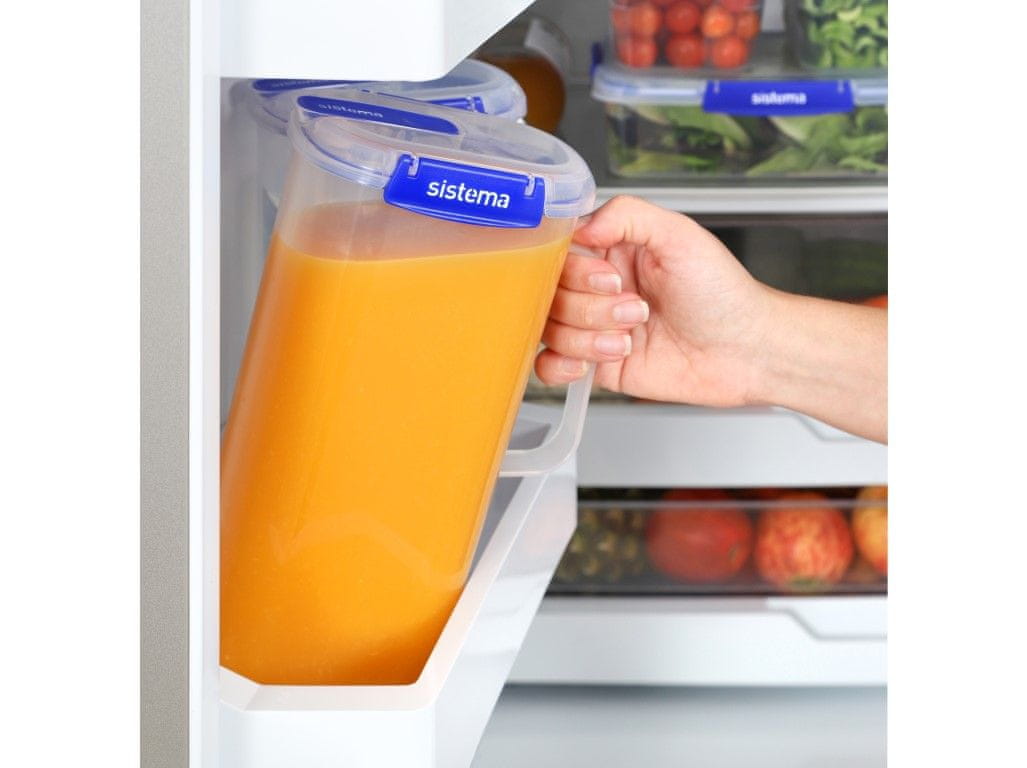 Sistema KLIP IT PLUS vrč, pripomoček za shranjevanje in postrežbo vaših najljubših pijač. Ta vrč s prostornino 2 litra je idealen za vsakodnevno uporabo, družinska srečanja ali pripravo večjih količin osvežilnih pijač, kot so svež sok, domača limonada, ledeni čaj ali preprosto voda s sadjem. V zgornji košarici ga lahko pomivate v pomivalnem stroju.