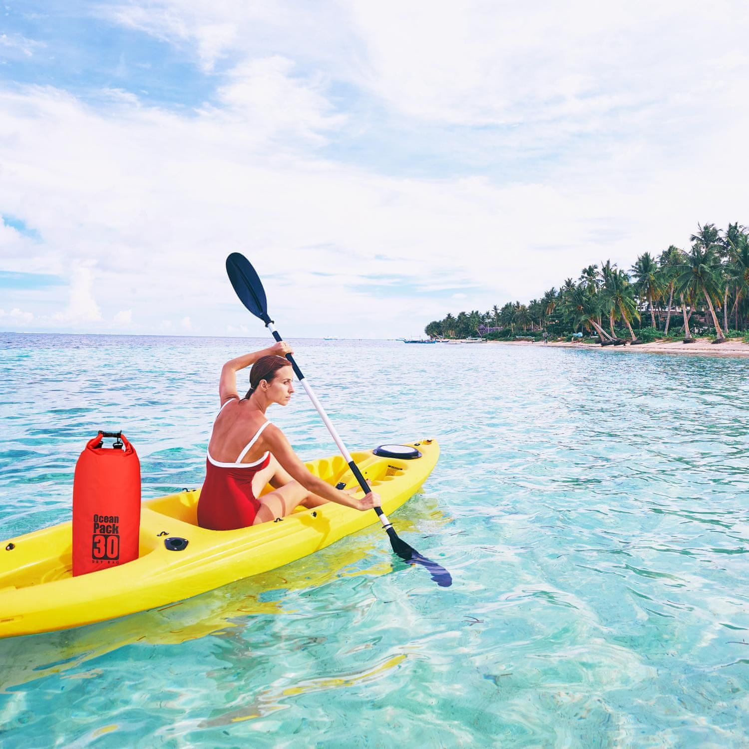 Nepremočljivi nahrbtnik Ocean Pack nudi zanesljivo zaščito dragocenosti med dogodivščinami na prostem. Ta 30-litrska suha torba varuje vaše stvari pred poškodbami zaradi vode med smučanjem, deskanjem na snegu ali jadranjem.