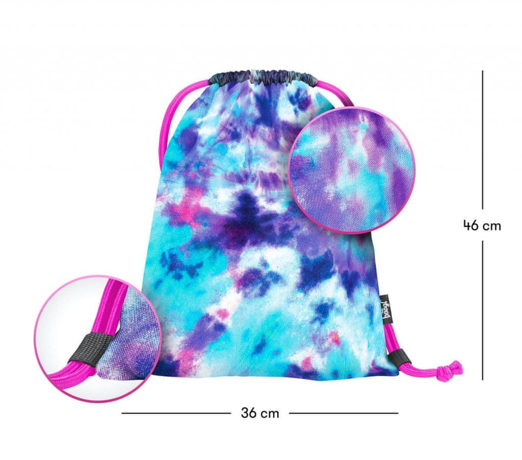 • Vrečka za čevlje ali druge manjše predmete za prostočasne dejavnosti. – Torba je izdelana iz močnega materiala, ki ga je mogoče prati. – Zapenja se z močnimi vezalkami, ki omogočajo tudi nošenje na hrbtu.