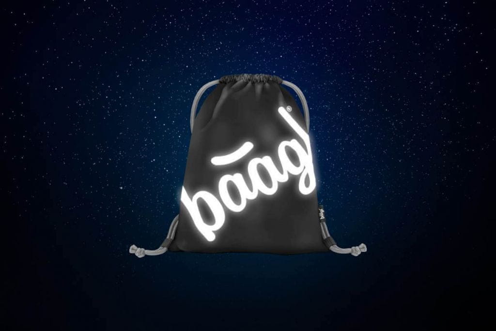 • Vrečka za športne copate v črni barvi z logotipom Baagl, ki se sveti v temi – Zapiranje z vrvico, ki omogoča tudi nošenje na hrbtu