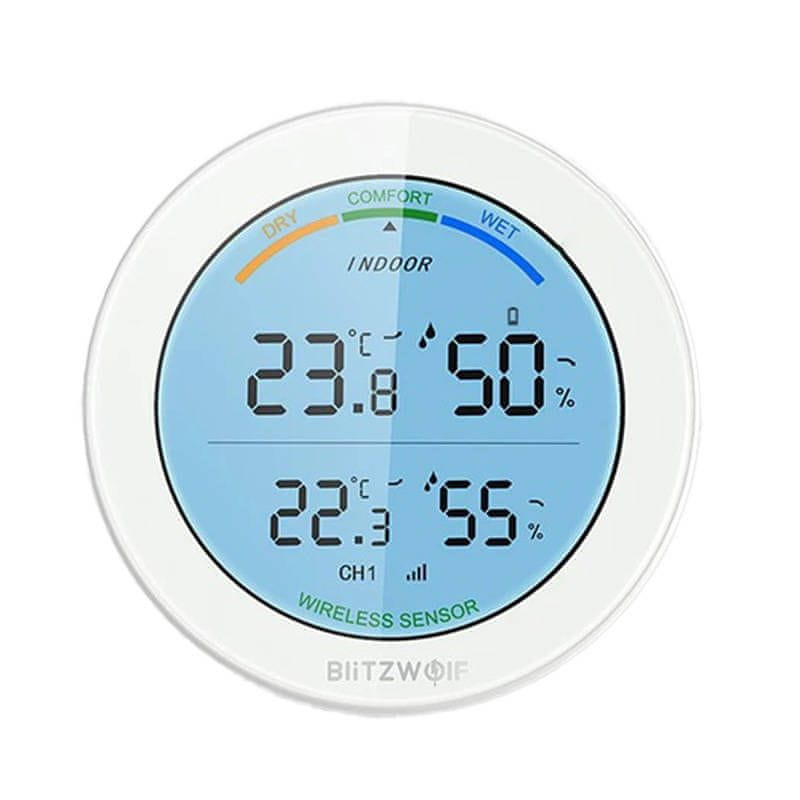 BlitzWolf BW-WS01 brezžična vremenska postaja vam bo zagotovila informacije o temperaturi in vlažnosti v vašem domu in zunaj njega. Združite ga lahko z največ 3 senzorji. Opremljen je z velikim osvetljenim zaslonom, za napajanje pa potrebuje le baterijo CR2477. Ponuja tudi poseben indikator udobja. Komplet vključuje postajo in en senzor.