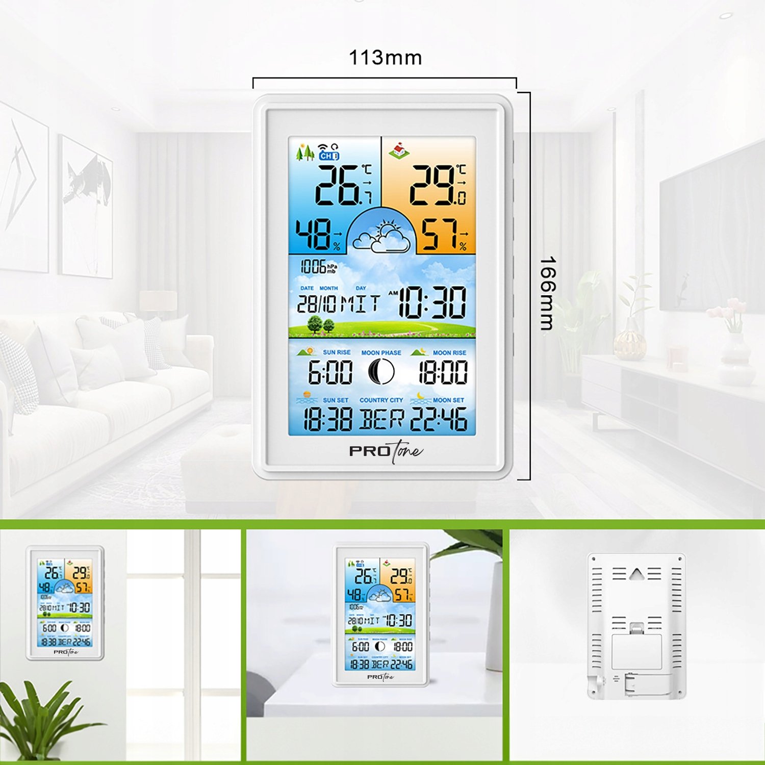 Ta LCD brezžična vremenska postaja je popolna rešitev za vse, ki želite biti vedno pripravljeni na vremenske spremembe. Ne glede na to, ali gre za spremljanje vremenskih pogojev na domačem vrtu ali v pisarni, vam ta napredna vremenska postaja omogoča, da ostanete informirani in pripravljeni.