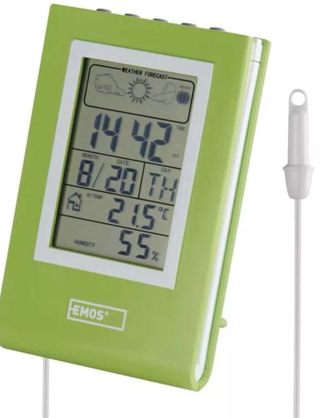 Vremensko postajo odlikuje velik in pregledni zaslon, na katerem lahko upravljate s funkcijami kot je vremenska napoved, lunine faze, koledar, budilka, datum ipd. Meri temperaturo zunaj in znotraj doma, prav tako notranjo vlažnost. Pri prikazovanju temperature lahko izbirate med enotama °C in °F.