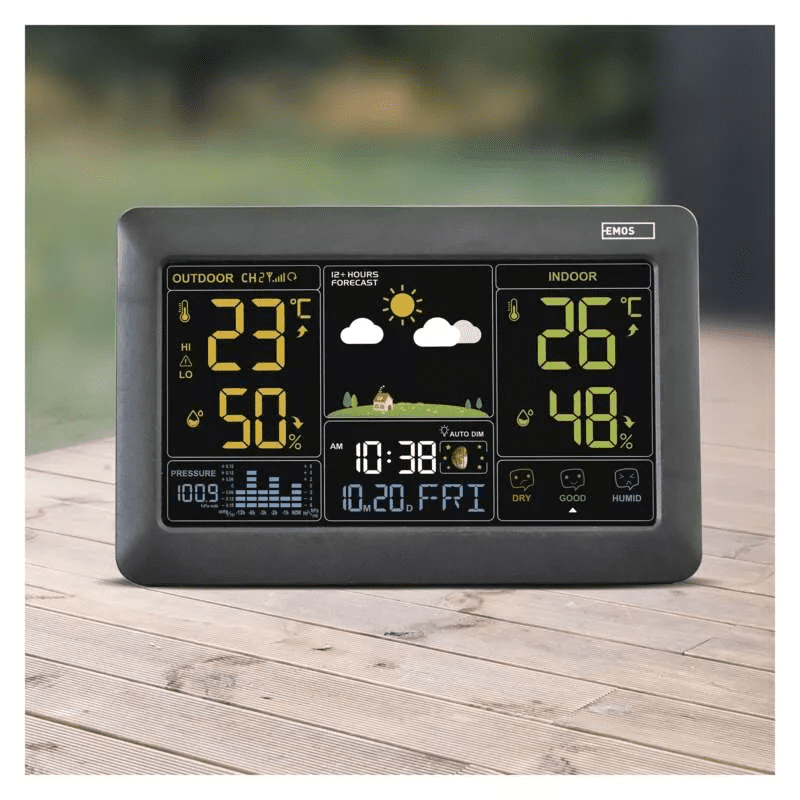 • Brezžična vremenska postaja Emos se ponaša z velikim osvetljenim barvnim zaslonom in zunanjim senzorjem.