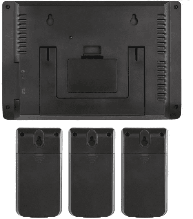 Vremenska postaja je opremljena s tremi zunanjimi senzorji, ki se napajajo z dvema AAA baterijama in jih lahko po potrebi namestite tako znotraj kot zunaj. Notranja temperatura se meri v razponu od 10 °C do +50 °C, zunanja pa od –40 °C do +70 °C z natančnostjo 0,1 °C, kar zagotavlja visoko stopnjo zanesljivosti pri spremljanju vremenskih razmer.