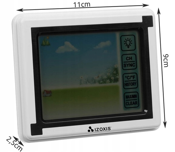 • MODERNA IN PRAKTIČNA – brezžična vremenska postaja je moderen in praktičen pripomoček, ki ima jasen zaslon. iz katerega lahko enostavno odčitate izmerjene vrednosti. Naprava je opremljena s4 gumbi: osvetlitev zaslona, ​​ch/synch – izbira kanala ali sinhronizacija branja, stopinje/zgodovina – preklapljanje merskih enot, zgodovina snemanja, maks. min./clear – najmanjši in maksimalni zapis ter možnost čiščenja pomnilnika.