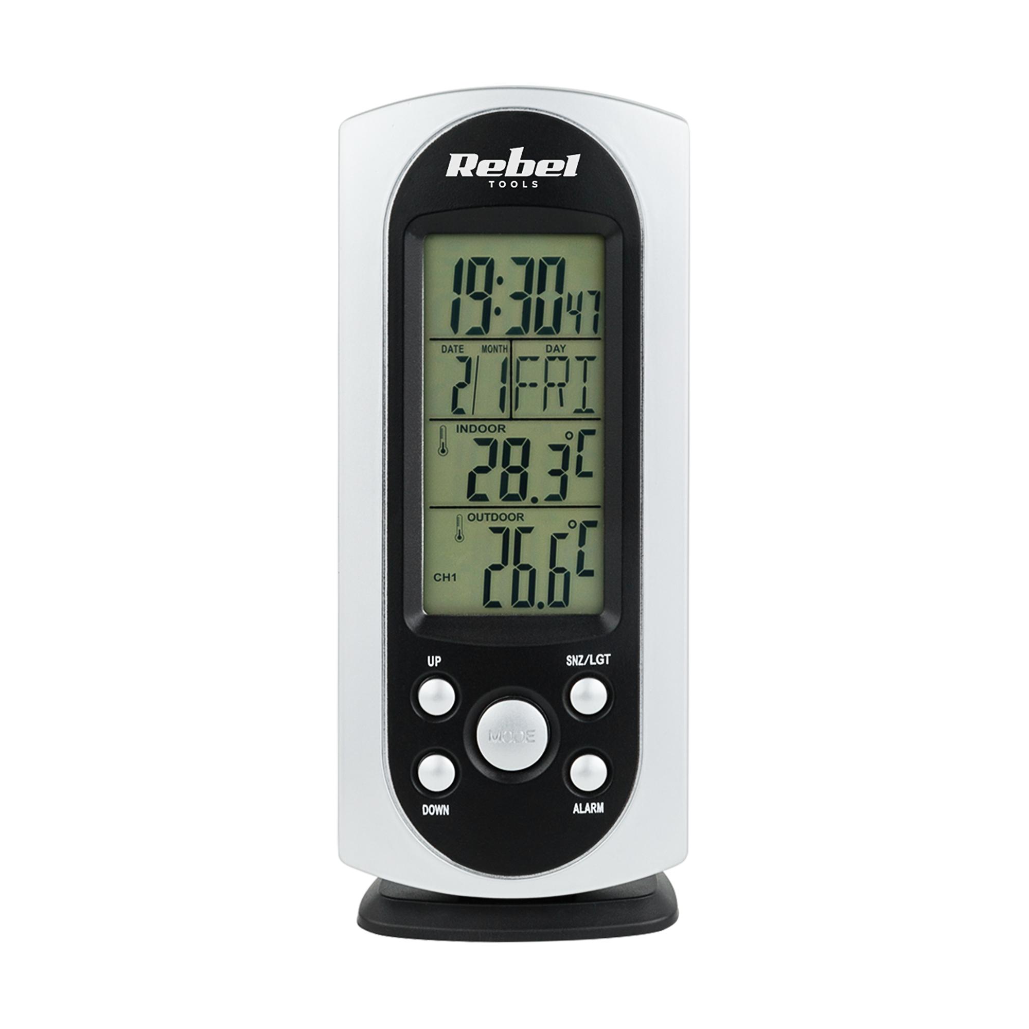 Osvetljen zaslon zagotavlja odlično vidljivost vseh podatkov, tudi v temi. Format časa je mogoče nastaviti na 12 ali 24 ur, temperaturo pa je mogoče prikazati v °C in °F, kar poveča udobje za uporabnika.