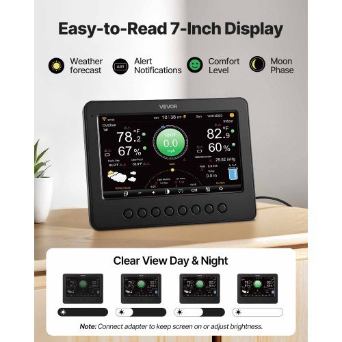 VEVOR Vremenska postaja 7-v-1 Wi-Fi z 1778 mm TFT zaslonom 361x351x489 mm