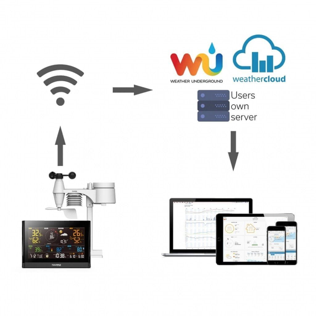 Glavna enota je opremljena s hitrimi procesorji, ki analizirajo izmerjene vrednosti meteoroloških spremenljivk in jih prek lokalnega omrežja Wi-Fi Weather Underground in Weathercloud, ali na uporabnikov lastni strežnik ali na PocasiMeteo.cz. Podatke lahko pošljete na vse strežnike hkrati.