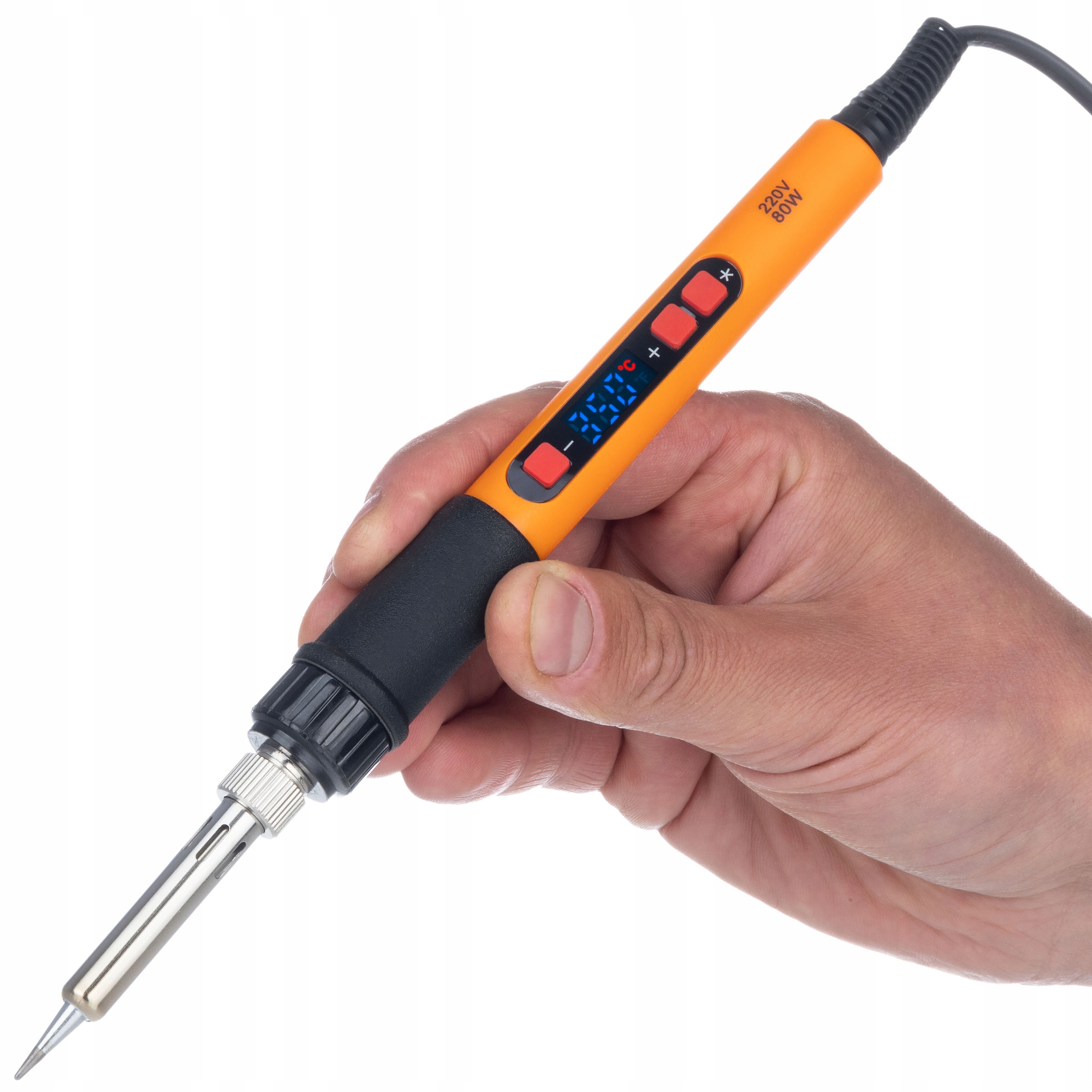 Lutownica Orange Mastiff 80W Seria Electric S Zestaw 12w1 Wyświetlacz (6 Grotów, Cyna, Podstawka, Gąbka)