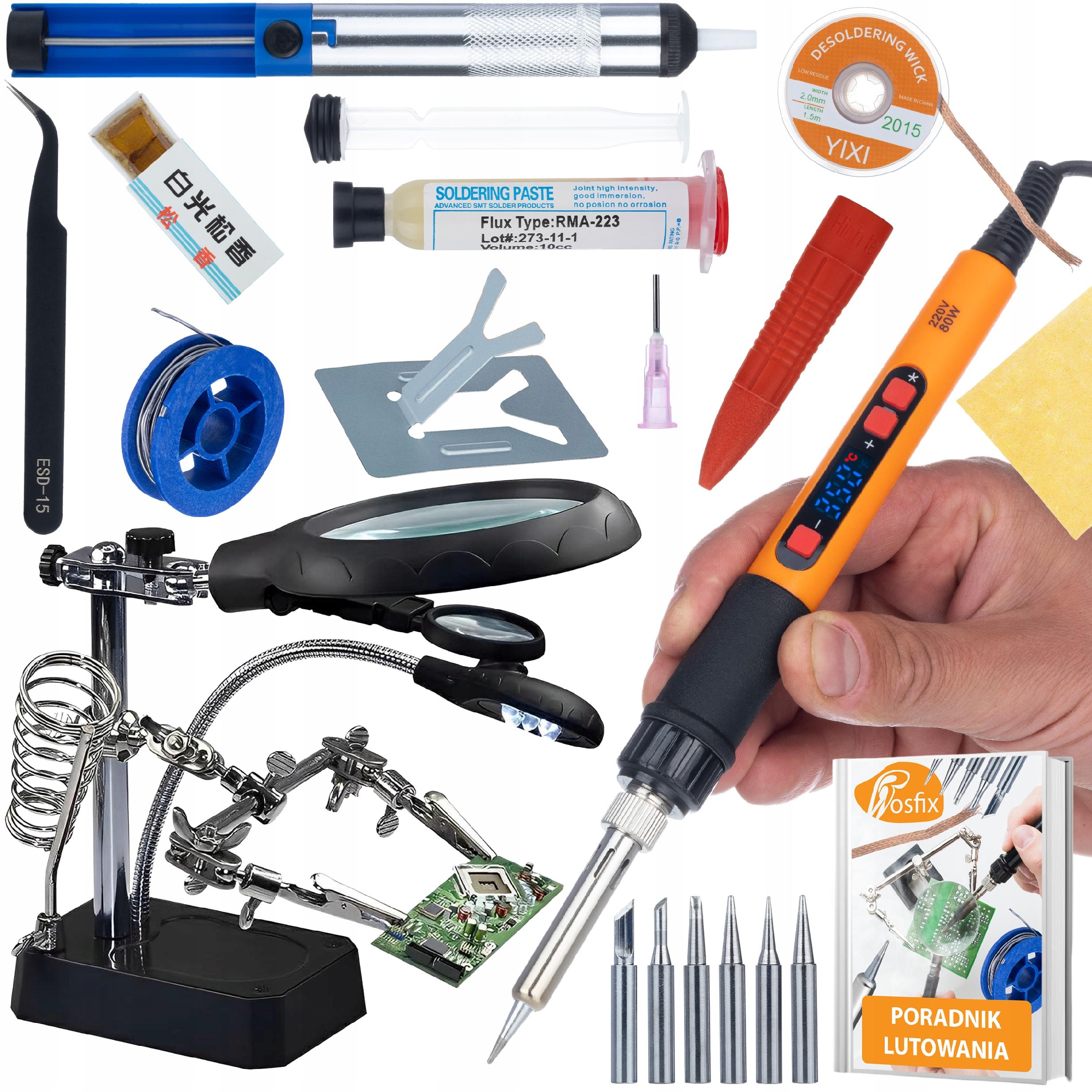 ✅ Lutownica precyzyjna Rosfix 80W z wyświetlaczem LCD – regulacja temperatury 180–500°C, zestaw grotów, cyna i podstawka.