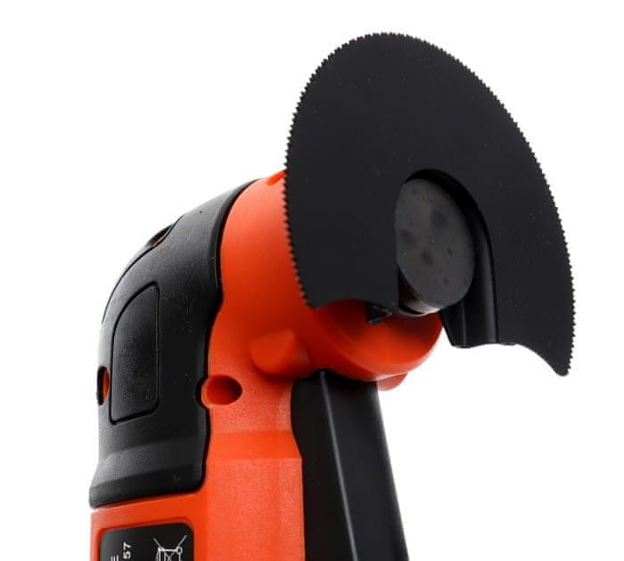 Večnamenska napravaje opremljen z dodatki, ki omogočajo širok spekter uporabe,vključno s potopnim žaginim listom, montažno ploščo (velcro), segmentnim žaginim listom in rezilom strgala.