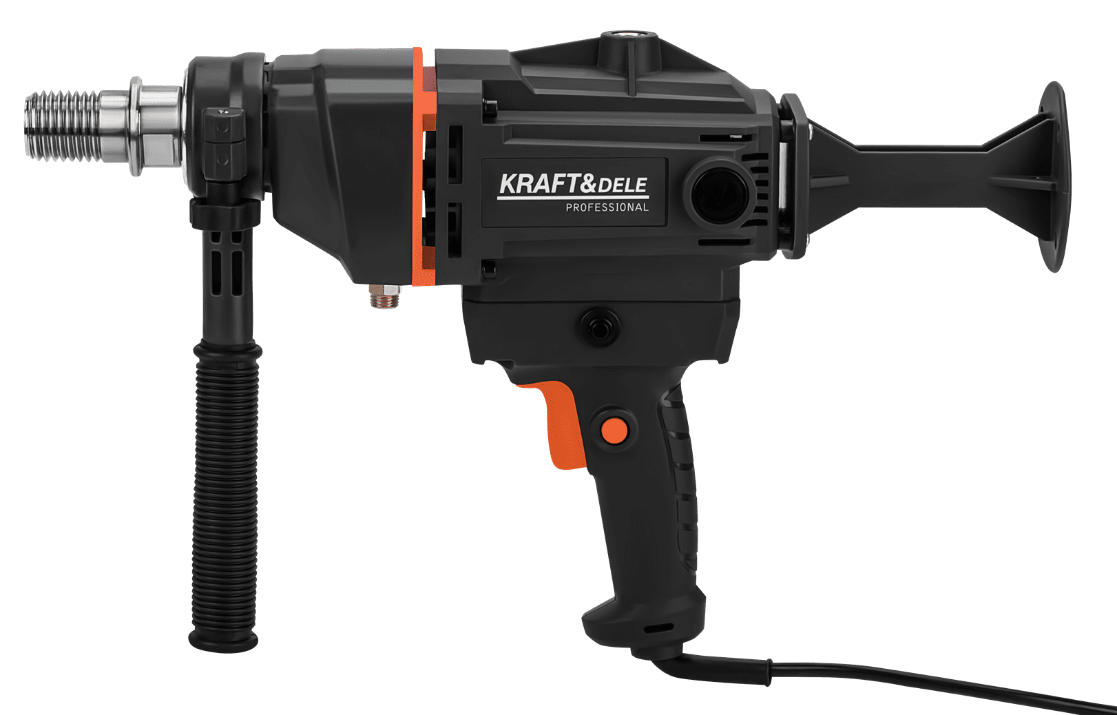 Sveder KD5952 je profesionalno orodje, namenjeno intenzivnemu delu v betonu, opeki in drugih gradbenih materialih. Zahvaljujoč visoki moči 2300 W in zmogljivosti vodnega hlajenja naprava zagotavlja učinkovito in varno delovanje tudi med dolgotrajnim vrtanjem. Omogoča uporabo velikih svedrov (do Ø202 mm), zato je idealna rešitev tako za gradbena podjetja kot tudi za zahtevne individualne uporabnike. Dodatne funkcije, kot sta podaljšan ročaj in opora, nameščena na okvir, zagotavljajo natančnost, stabilnost in udobje uporabe v vseh delovnih pogojih.