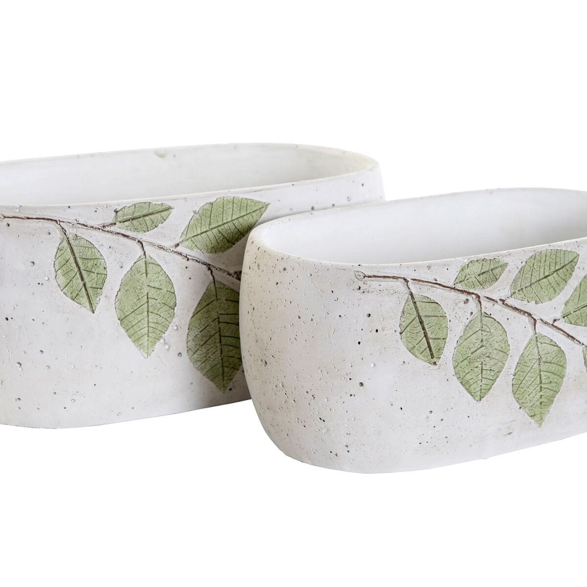 DKD Home Decor Komplet loncev DKD Home Decor Cement Bela Zelena Svetlo siva Orientalski list rastline (25 x 14 x 11 cm) (2 enoti)