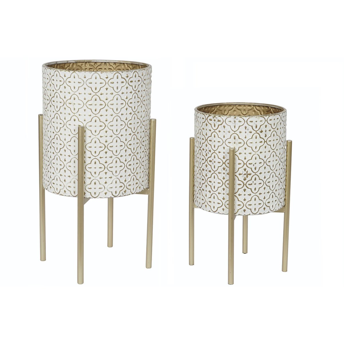 DKD Home Decor Komplet lončnic DKD Home Decor Golden Metal White Arab (31 x 31 x 58 cm)