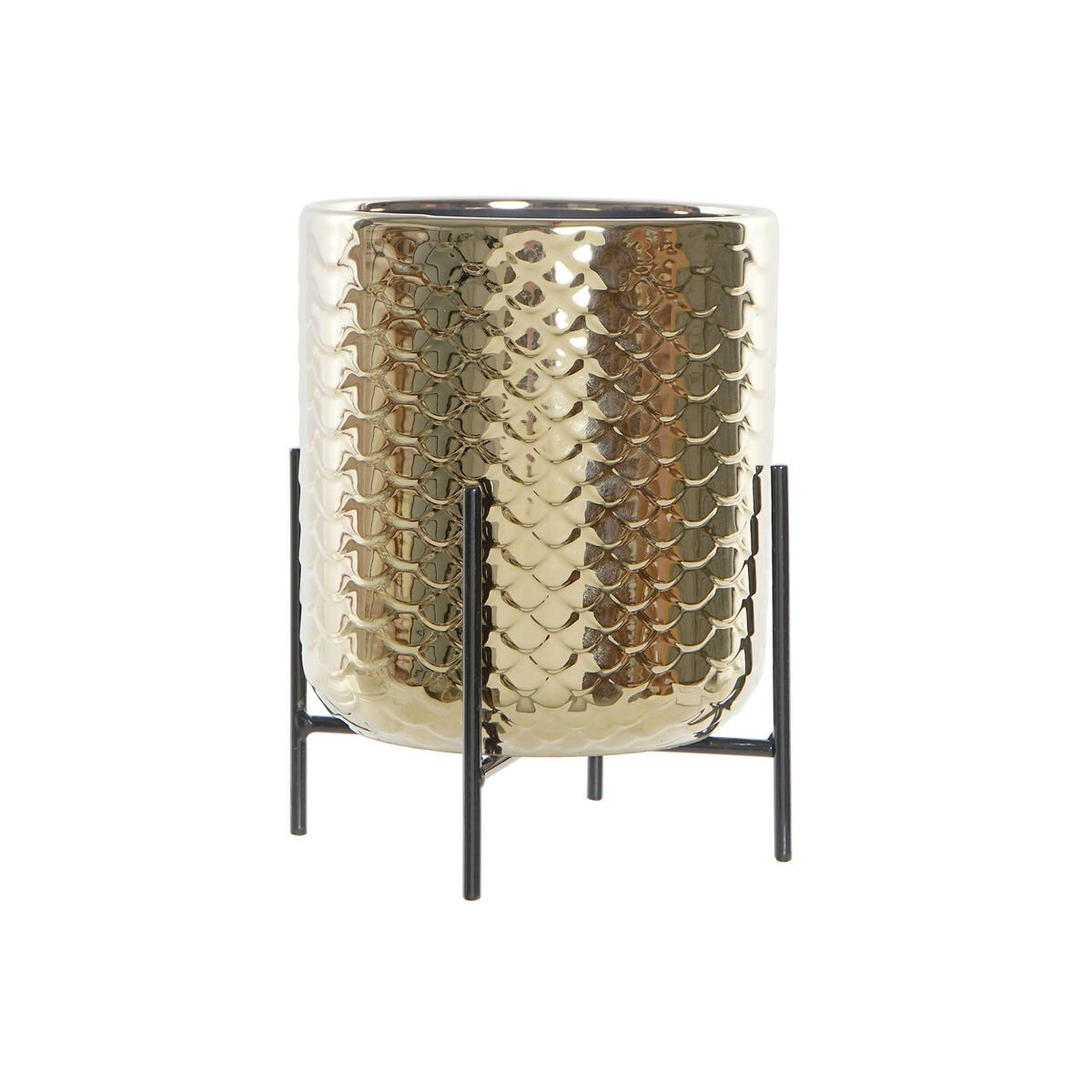 DKD Home Decor Lonček DKD Home Decor Keramika Črna Zlata (13 x 13 x 18 cm)