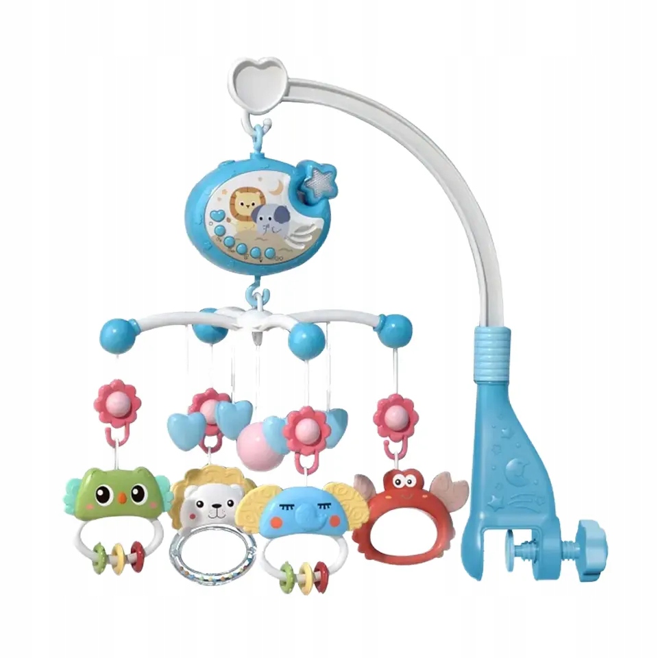 Modra mobilna otroška posteljica z glasbenim projektorjem, daljinskim upravljalnikom in glasbeno skrinjico
