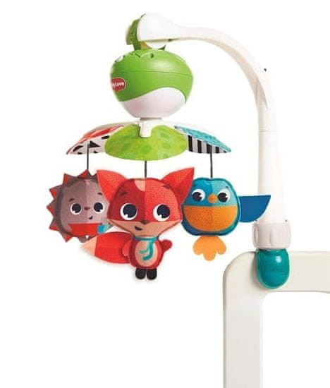 Vsak otrok potrebuje rutinski prehod med igro in počitkom Vrtiljak Tiny Love bo s kombinacijo glasbe in gibanja med igro spodbujal čutila vašega malčka in ga postopoma pripravljal na spanje, ko bo zaspan