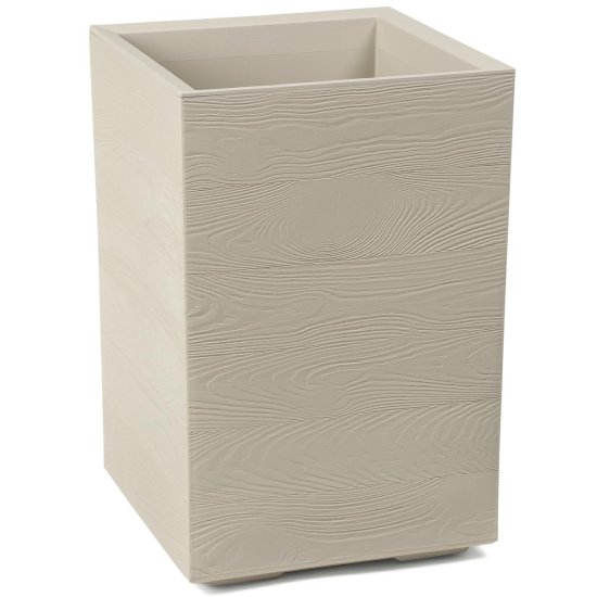Velik, visok korito v obliki stebra, ki navduši s svojim šarmom in praktičnostjo. S svojim modernim slogom je čudovit okras za vsako teraso, balkon ali vhod. Učinek lesa odlično dopolnjuje zelene rastline in ustvarja harmonijo estetike in funkcionalnosti.